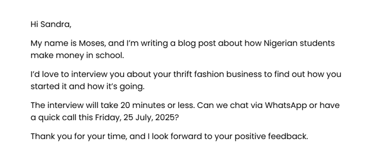 “Sandra, a student at UNIBEN who runs a small thrift business, started her business with just N3,000. ‘I used my phone to record the items and posted 3-4 times daily. That’s how I got my first 10 customers,’ she said.”