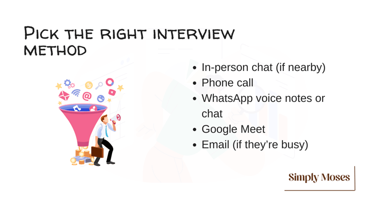 Here’s a simple, step-by-step guide to conduct an interview for research when writing an article or blog post (with relatable examples):