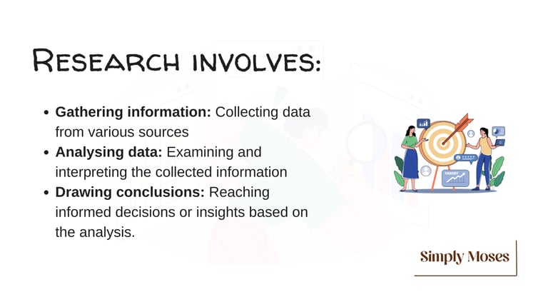 So, in simple words, research is all about gathering new data, analysing it, and making informed choices based on it.