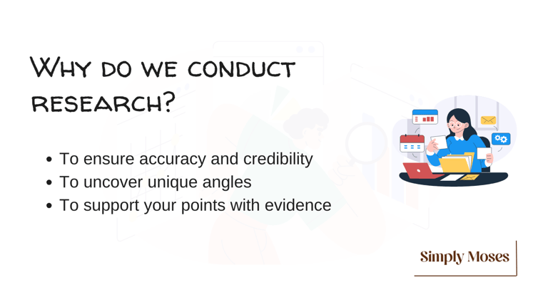 So, research helps you verify facts, statistics, and claims to ensure they’re reliable and trustworthy.