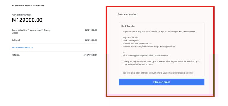 Note: After making your payment, remember to click “Place an order.”
