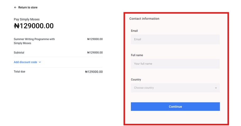4. Enter your contact information (email, full name, and country) and click “Continue.”
